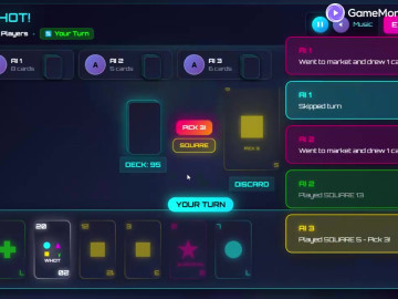 古典的なアフリカのカードゲームWHOTを体験しよう!AIとのソロプレイや、リアルタイムマルチプレイヤーで友達と対戦できます。鮮やかなネオングラフィック、BGM、スムーズなゲームプレイが特徴です。無料でプレイ!ゲームプレイ: 1. 自分の番に、以下のいずれかに一致するカードを出します。 - 一番上のカードの形(丸、三角、十字、四角、星) - 一番上のカードの数字 2. カードが出せない場合は、山札から1枚引きます。 - 引いたカードが出せる場合は、それを出すことができます。 - そうでない場合は、「ターンをスキップ」をクリックします。 3. WHOTカード(20)はワイルドカードです。いつでも出すことができ、好きな形を選ぶことができます。